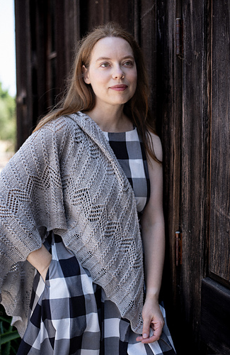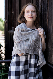 Flowing lace and rhythmic texture define this triangular shawl, worked from the top down with a central spine that anchors the design. Zig zag lace panels alternate with eyelet ladders and textured ridges, creating a fabric that is both airy and structured.