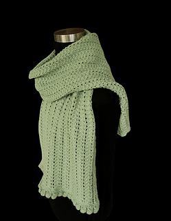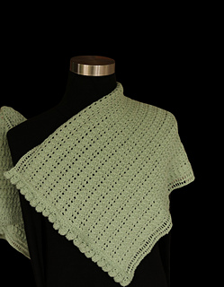 Beginning with large scallops at the bottom edging, the shawl drapes gracefully with tiny clamshells between openwork borders. To finish, you have a choice: sea urchins, sea kelp, or a garter-applied edging.