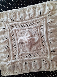 The pattern consists of four leaves in the centre of each square. Then there are a few ridges of open work and ridges of purl knitting, and the squares are bordered by a row of leaves. Knitting Cotton No. 10, and two needles.