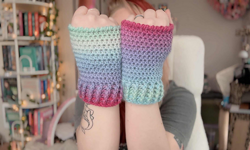 - Approx. 90 yards of worsted wight yarn (KP Chroma in Candy Mountain used for the sample, you can make roughly 3.5 fingerless gloves per skein.) - (Use code AKPSAMB at checkout on KnitPicks.com for 15% off your order!)