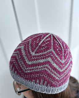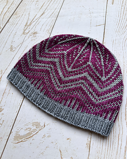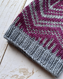 Sample shown in Malabrigo Rios shades Cape Code Gray (MC) and Hollyhock (CC).
