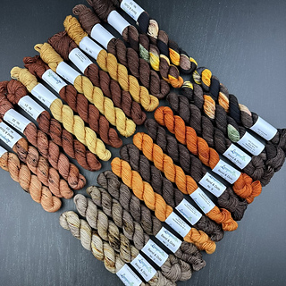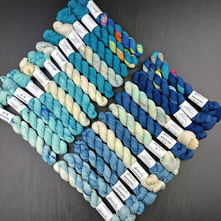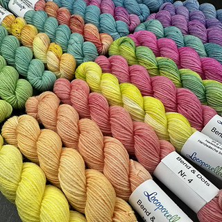 24 Farben in Fingering/Sockengarn-Stärke mit einer Lauflänge von 80 m (87 yds)/20 g.