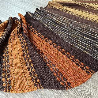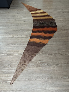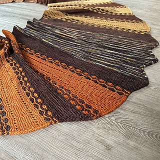 A light and dreamy shawl, curving gently with a trail of tiny floral echoes in dot form.