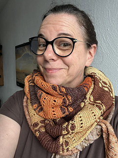 The pattern Kleinod was developed especially for the Locoporella Advent Calendar 2025 „Bend & Dots“ in Blue, Soft or Dark. The shawl can also be knitted from 3 or more colors.