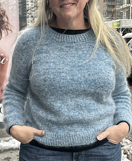This pattern can be worked in a fingering weight yarn held together with a strand of lace weight mohair yarn OR in a single strand of DK weight yarn. If you are using a single strand of DK weight, base your yardage needed on the yardage requirement for the fingering weight yarn (NOT the g requirement). Be sure to swatch in your chosen yarn(s) to ensure you achieve the intended gauge and like the resulting fabric.