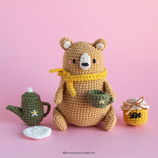 Every year, the adorable creatures of the Enchanted Woodland meet up for a picnic of grand proportions. Bernie the Bear is the first to arrive and as a true tea aficionado, he brought his favorite tea set to sip while he waits for his friends. And you can’t have a cup of tea without some delicious honey, right?