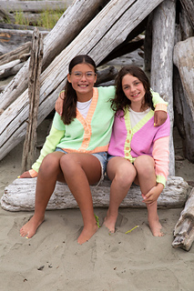 Grab your favourite skeins (and maybe your bestie too) for some fun! These kiddos are enjoying their matchy cardigans, dancing in the sand.