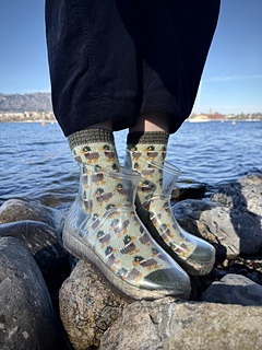 Knit from the top down, starting with a striped ribbed cuff, these socks have a short row heel and a fun to knit stranded colourwork duck motif pattern.