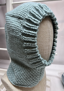 Ribbing is made all around the face opening and two small seams complete the project. The ribbing can be made wider or narrower, depending on how much of the face you want to be exposed.