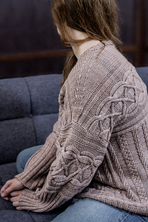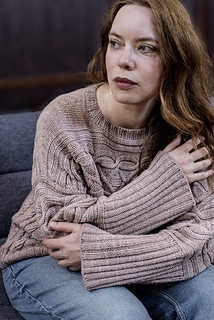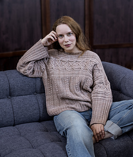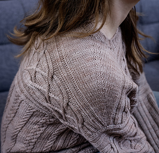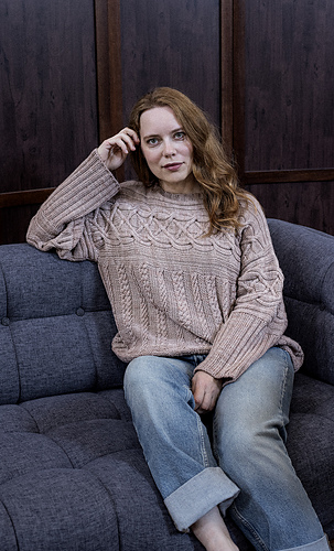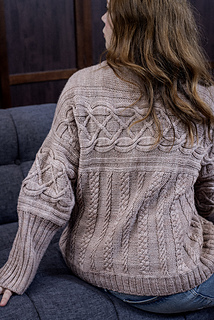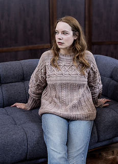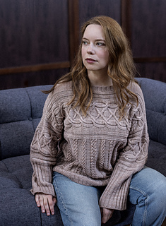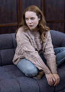 A richly cabled pullover that is coziness itself, with a lot of style. The modular construction begins with the yoke worked flat from armhole to armhole with shoulder and neck shaping. Stitches for the lower body are picked up for the body, knit seamlessly in the round from the top down.