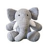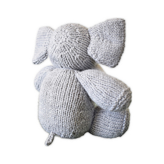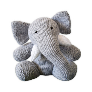 This cuddly elephant is knitted predominantly in stockinette, with garter stitch feet. Designed by Amanda Berry @fluffandfuzz, the elephant is knitted in acrylic DK yarns so he is easy to clean after play. Most pieces are knitted flat (back and forth) on a pair of single-pointed knitting needles, and the tail is an i-cord tube knitted on two DPNs. This pattern incorporates short row shaping.
