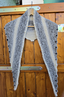 The original sample was made with one ball/skein each of a self-striping yarn and a fluffy yarn held together => 1 x Schoppel Edition 6 plus 1 x Frida Fuchs Dufte Lace.