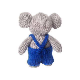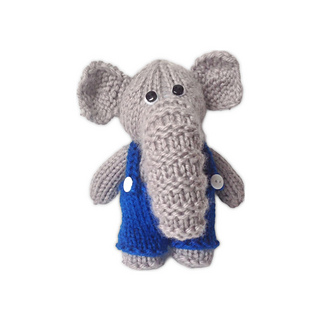 Bobby is a little pocket-sized elephant toy, with knitted trousers and braces. Designed by Amanda Berry @fluffandfuzz, this toy is knitted in acrylic DK yarns on single pointed needles (not in the round).