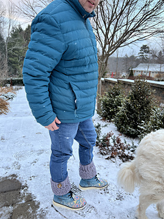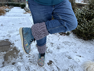 Crochet an easy pair of boot cuffs to stop the down draft of the air into your boots. This is using the crochet feather stitch.