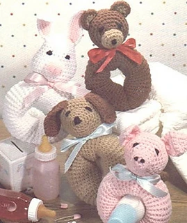 Baby bottle holders - a ring with an animal head attached. Bottle fits in the ring.