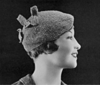 Bow Beret, 22 inch headsize. Any changes needed to make a 23 or 24 inch headsize will be given in parentheses. Material - Fleisher’s crepe boucle, 2 balls. Larger headsize will require 3 balls. 23 inches Grosgrain Ribbon 1 inch wide.