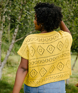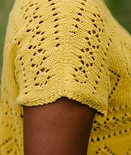 We like the juxtaposition of a modern, boxy shape and feminine lace motifs knit on a slightly grand scale. With shaped shoulders, a gently dipping neckline, and options for two different lengths, this lacy top is so easy to pop on, and feels both comfy and really pretty.