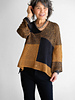 Two colors of yarn are used and the top is knit primarily in stockinette stitch with two strands of yarn held together throughout.