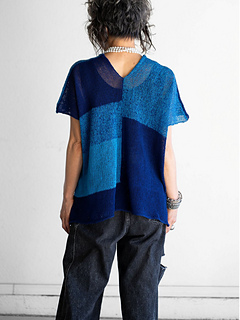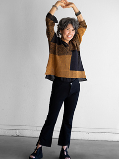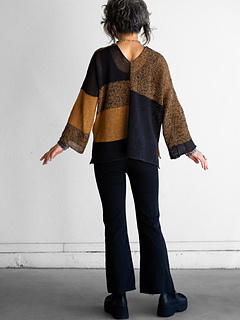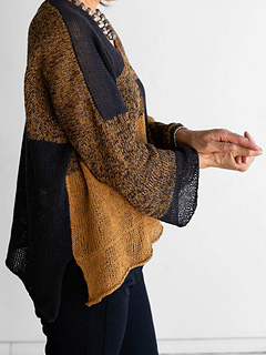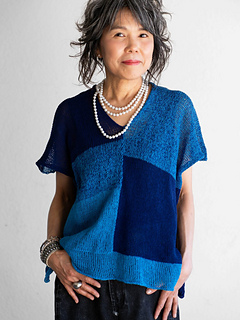 This garment is made with four rectangular pieces (two for the front and two for the back). Seam the shoulders, the sides, and the center of the body. The unseamed section on the center Body makes the V-neck opening. This makes it easy for you to adjust the depth of the V-neck to your preference.