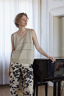 The top is knitted in the round up to the armholes.