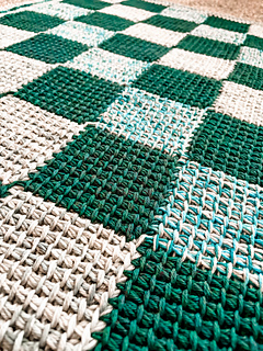 A Tunisian crochet afghan made with three contrasting colors for a modern and classic baby/toddler blanket blanket