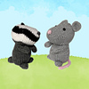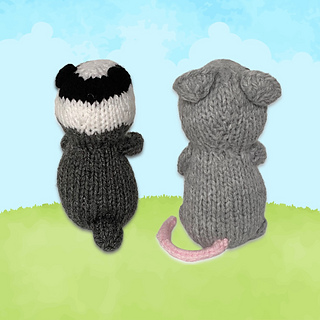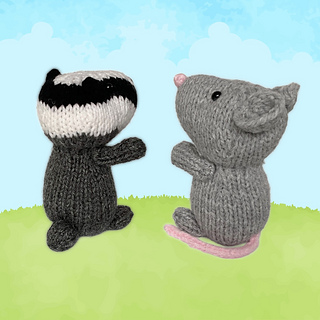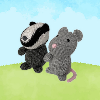 Bubble Badger and Squeak Mouse are the best of friends in the Woolly Woods. Designed by Amanda Berry @fluffandfuzz, the toys are knitted in acrylic DK yarns on single pointed needles (not in the round). The mouse tail is an i-cord tube worked on two DPNs, and both toys incorporate Kitchener stitch, and picking up stitches along a cast off edge.