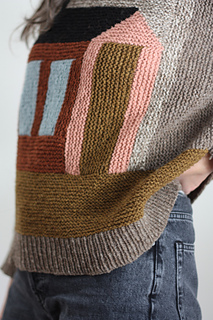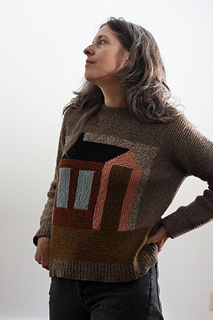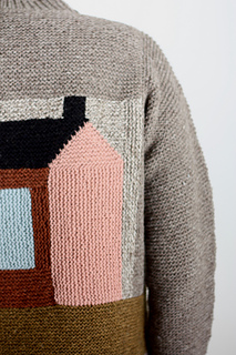 There are 2 PDFs included with this pattern. The first has the pattern including the charts and diagrams. The 2nd includes a schematic and coloring sheet for planning and exploring your color placement. Use as many (or few) colors as you like! Stash bust! In the spirit of the quilt block that inspired this motif I encourage you to modify and improvise. Adjust the placement of the motif by adding length above or below the house block. Customize the width of the body or sleeves as needed. Plan your yarn purchases accordingly.