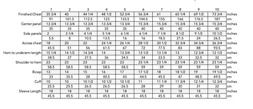 Recommended ease 4-12”/ 10-30 cm. Shown in size 3 worn with 8”/20 cm of positive ease.