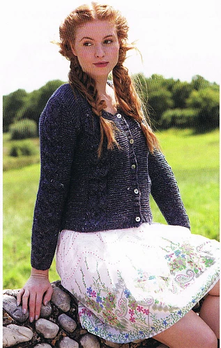 This is a pattern for a Heart Cable Cardigan, originally published in Knitting magazine under the name Caireann. It is in garter stitch with a hearts cable in panels on the front, back and sleeves. You will need: