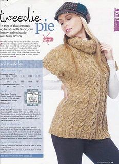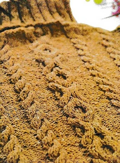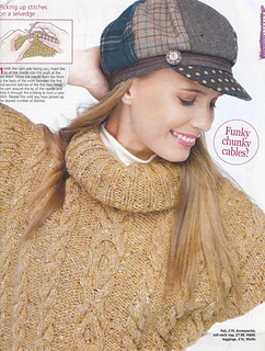 This is a pattern for a Cable Roll Neck Tee, originally published in Lets Knit. It has two different cable patterns on the back and front, a rib collar and edges and is a simple tee shape. Actual bust:
