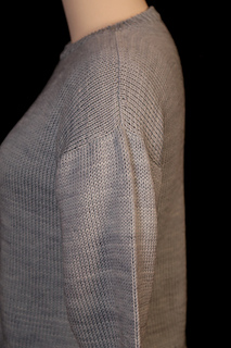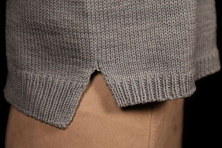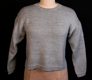 My granddaughter asked me to knit her a sweater. She drew a picture of what she wanted and asked if I could do it. How could I say no! It is a slightly cropped, basic drop-shoulder design with the back hem longer than the front hem. The front and back are started separately, then joined in the round and worked to the armholes. The front and back are then worked flat to the neck shaping. Sleeve stitches are picked up around the armhole and worked to the cuff. The hems, cuffs, and neck are worked using the long-tail tubular cast on and bind off.