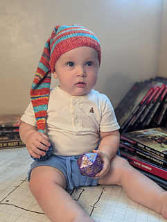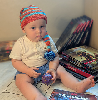 Easy enough to knit during a TTRPG session, the Campaign Party Hat is a Rule of Cool kind of a pattern. There are steps, recommendations, and a data table, but the whole pattern is designed to be open to the creator’s interpretation. Stripe as your colors and inspiration guide you. Make a short nightcap or a comically long hat that drags on the floor. Roll a die to choose color order or stripe width. Imagine the possibilities and see what happens. Make a hat for everyone in your campaign party.