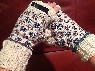 Candied violets…yummy. That’s what these mitts look like to me…so soft and feminine. The pattern includes sizes for teen and woman med. Fun to knit. So yummy, you’ll want to eat them…well, maybe that’s just me…Now you see it--now you don’t! These terrific mitts have a secret pocket that is hidden to protect your valuables while you use your hands. Wool makes these super warm. Top can be unfolded to cover fingers, or folded down to cover pocket and expose those texting fingers. Layer over gloves for extra warmth and a nifty look.