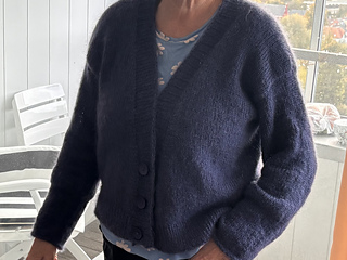 The mohair jacket “MARISOUL” is knitted in two threads from top to bottom, so there are no seams that have to be joined together. The sleeves are knitted out of the edge stitches, as is the V-bevel, which can be closed at the bottom with 2 buttons.
