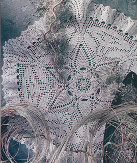 Table center with pineapple center, filet flowers, and pineapple border. Slight ruffle.