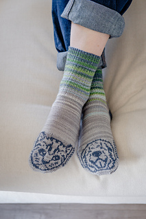 Celebrate your very best friends with the Cat and Dog Socks! This collaborative project between Andrea and Catherine at Gauge Dye Works is inspired by the bestest pets, with sweet and skeptical faces and very accurate paw prints. Fun, variegated colours are paired with simple and satisfying broken rib pattern to make a project that’s hard to stop knitting. Finish it off with colourwork toes that are bound to give you happy feet.