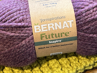 The Crochet Chunky Pom Pom Cat Ears Hat uses Bernat Future Inspire yarn in the colour called Acidic Moss. Just one ball and you have a brand new hat.