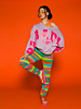 The pants are knitted from the top down. After the sidewise-knitted cuff, the pants are formed from triangles and rhombuses created using short rows.