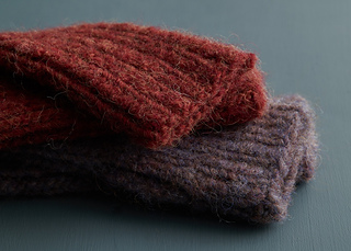 - 1 ball of Purl Soho’s Pouf, 50% alpaca and 50% Andean highland wool. Each ball of this super bulky-weight yarn is 108 yards/ 100 grams; approximately 40 (50, 65, 80) total yards required. We used Wheat Flour, Purple Heath, and Chestnut Red.