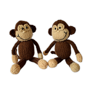 The Cheeky Monkeys are making mischief! These little toys are quick to knit stash- busters. Both monkeys follow the same pattern, and are worked predominantly in stockinette. Designed by Amanda Berry @fluffandfuzz, the monkeys are knitted in acrylic DK yarns on single pointed needles (not in the round).