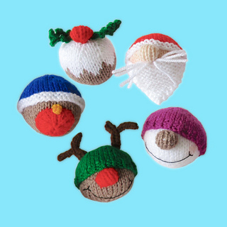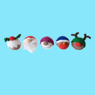 Have a happy handmade Christmas with this set of baubles to hang on your Christmas tree. The knitting pattern includes five designs: Santa, Snowman, Robin, Rudolph and Pudding. Designed by Amanda Berry @fluffandfuzz, the baubles are knitted in acrylic DK yarns on single pointed needles (not in the round). Rudolph’s antlers are i-cord pieces worked on two DPNs, and the pudding pattern incorporates a Fair-Isle (stranded) colour pattern.