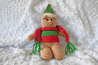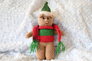 This simple crochet Christmas bear is crocheted with a sweater as part of the body. The festive hat is seamed to the head during assembly. A long scarf can wrap around several times and be styled different ways. This is the first pattern in the 11th Annual Holiday Stashdown Crochet Along.