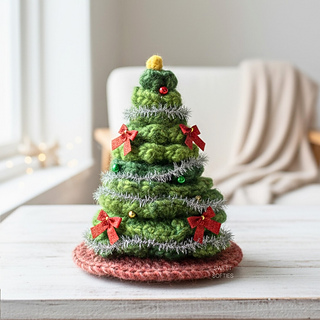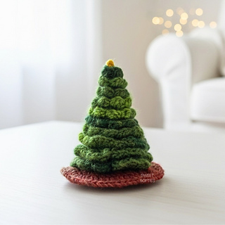 This No-Sew Christmas Tree is a fun crochet pattern featuring a tall fir tree with a tree skirt. It is crocheted seamlessly in one piece, making it a relaxing project to work up without having to do any sewing. This mini tree is the perfect desk topper and decor for the winter holidays. It doubles up as a pincushion; inserted sewing pins will look like tiny ornaments! This crochet tree looks beautiful as-is in its natural state, but is also fun to decorate with mini accessories (e.g., bows, beads and buttons for ornaments, glittery pipe cleaner or eyelash yarn for a garland, and a dusting of glitter or powder for a snowy or frosted look). A truly lovely product to sell at Fall and Winter craft fairs and markets!
