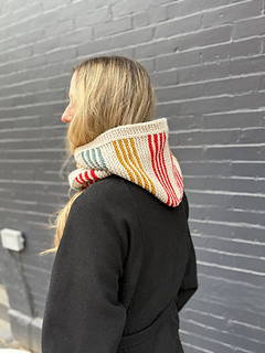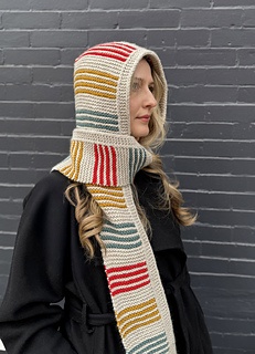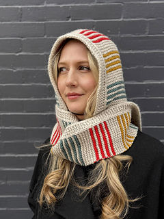 Chromia Hood offers the warmth of a hood and the practicality of a scarf, knit in plush garter stitch that drapes comfortably
