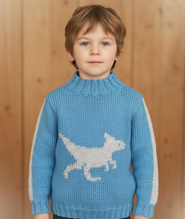 An easy and quick design to knit. The pattern includes colour coded sizes for ages from 4 to 11 years and a large full-page coloured intarsia chart for the Dinosaur.