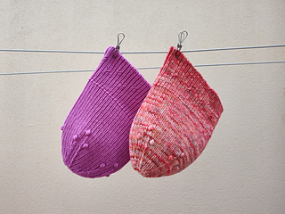 Photos show samples knit in: White Gum Wool 10ply/Aran (100% Superfine Merino 100g/3.5oz, 190m/207 yds) in “Peachberry”, and Augustbird Kookaburra (100% Australian Merino 10ply, 100g/3.5oz, 190g/270 yds) in “In My Heart of Hearts”.
