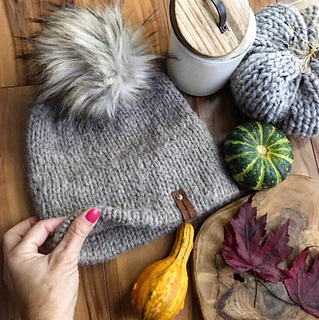 This beanie is knitted with 2 strands of worsted weight yarn held together creating thicker yarn to work with. Wool blend yarn will keep you warm without being itchy.