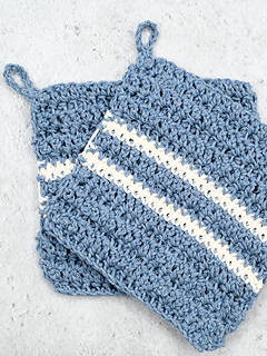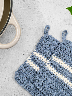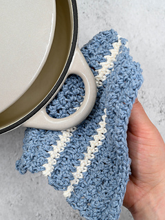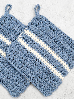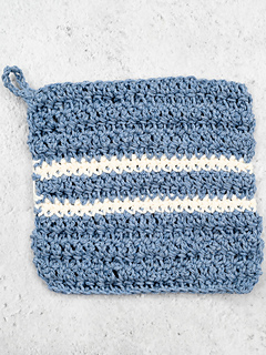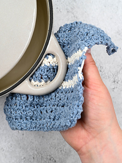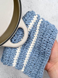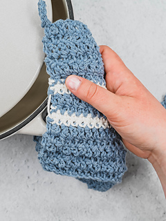 With striped features & a textured crochet stitch, it’s helpful when grabbing something hot out of the oven. Use cotton yarn & you’ll have it for a long time.