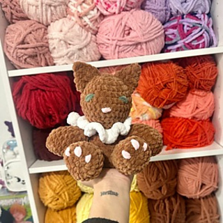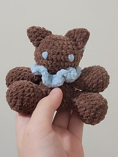 Cleo was originally made using Big Twist Posh (weight 5) yarn with a 4.5 mm hook, but you can use any yarn with a matching hook size to create your own version. Her soft sitting pose and cute two-color design make her a beautiful display piece, gift, or addition to your handmade collection.