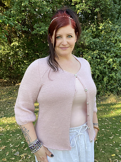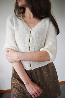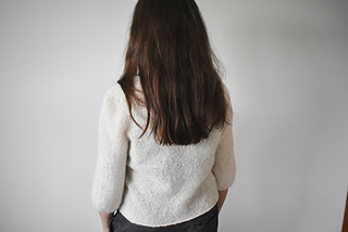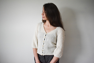 Cloud Cardigan pattern is worked seamlessly from the top down using the contiguous method for set-in sleeves, creating a tailored fit without the need for sewing. Sleeves are worked after the body has been completed. Body and sleeves are finished with an applied i-cord on the cuffs, button band, and neckline.
